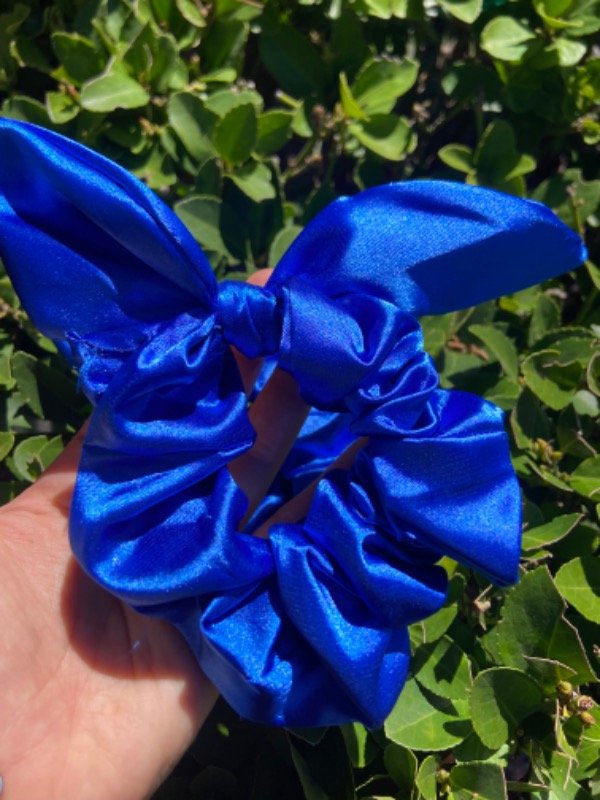Scrunchie de tamaño mediano con orejitas confeccionada en tela saten.
